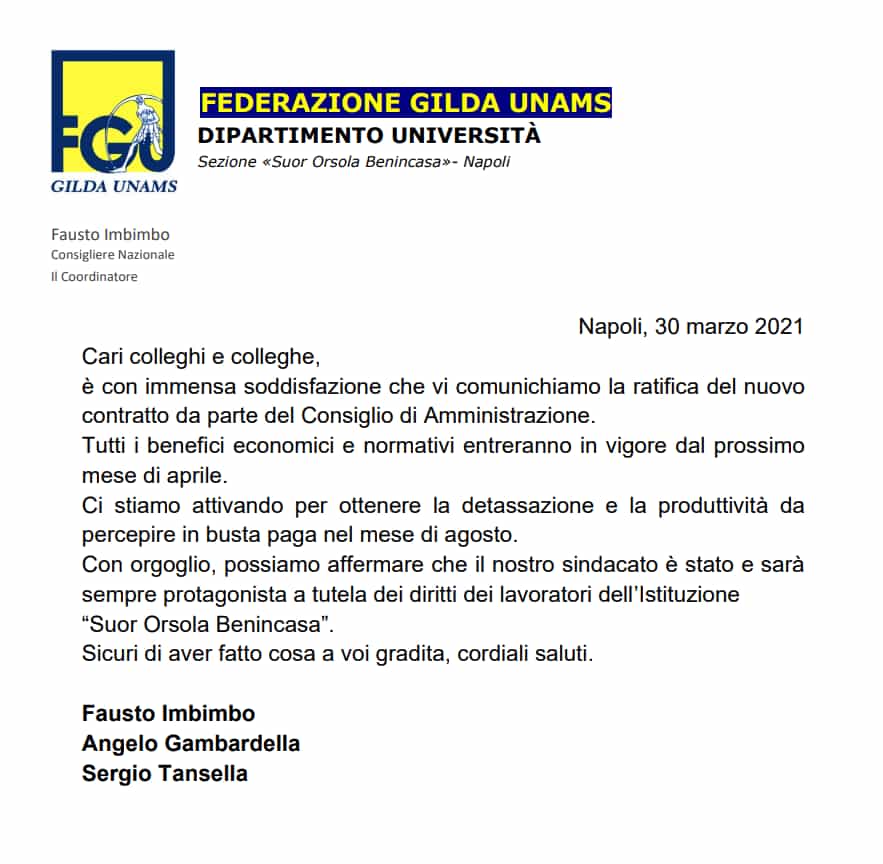 30 marzo 2021. Giornata memorabile per i lavoratori dell'Università "S . Orsola Benincasa" di Napoli!!!
