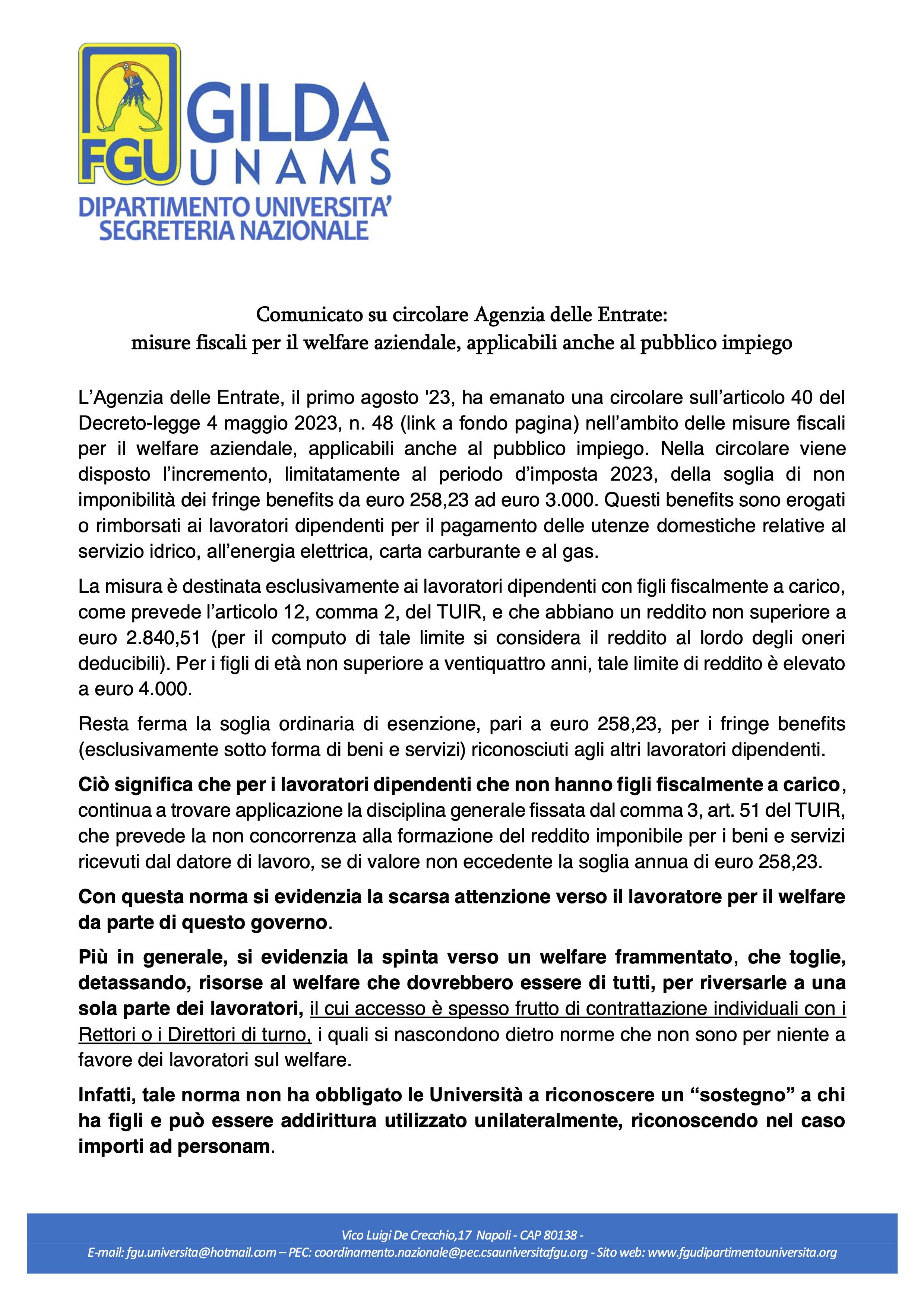 La FGU GILDA Dipartimento Università, valuta ciò con soddisfazione in quanto garantisce a quasi 15 mila precari, operanti nell’ambito della ricerca, maggiori tutele.