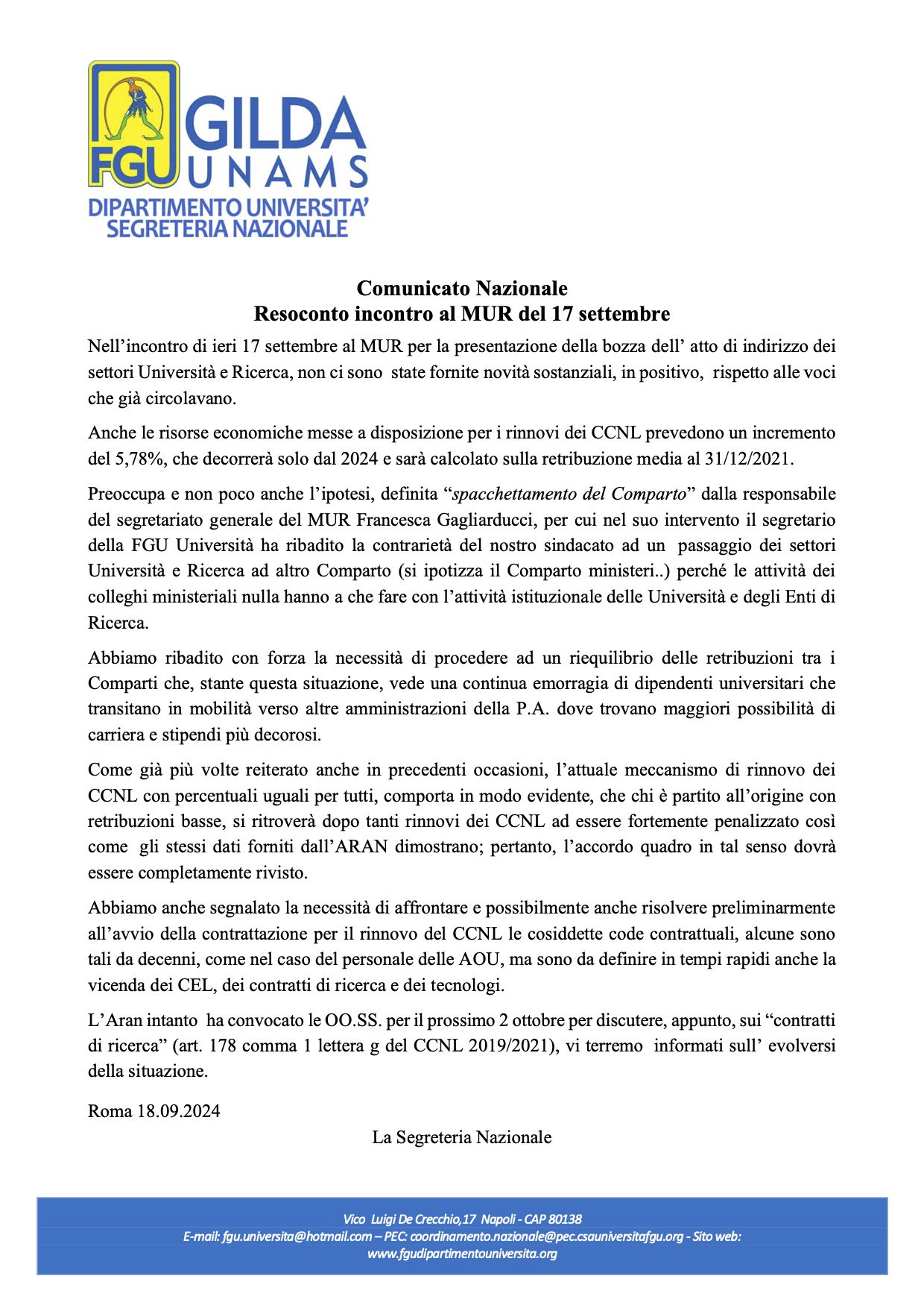 Giungano al ns dirigente sindacale neo eletto Bruno Mazzi ed a tutto il gruppo dirigente FGU Università dell'Ateneo di Foggia i ns più sentiti complimenti per l’ottimo risultato raggiunto. Buon Lavoro!