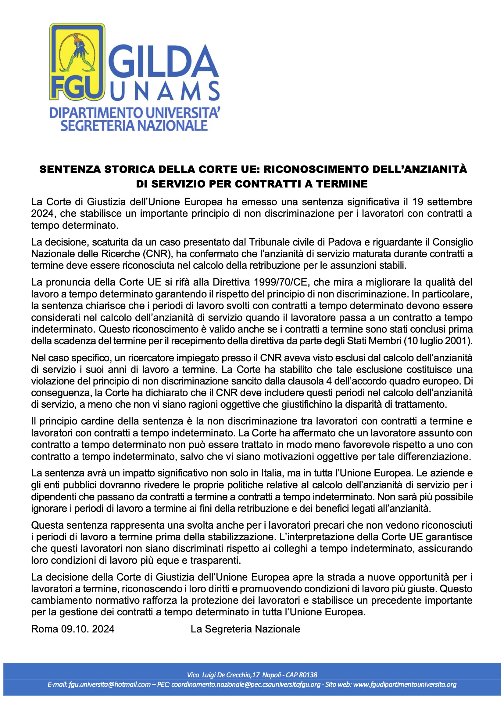 SENTENZA STORICA DELLA CORTE UE: RICONOSCIMENTO DELL’ANZIANITÀ DI SERVIZIO PER CONTRATTI A TERMINE
